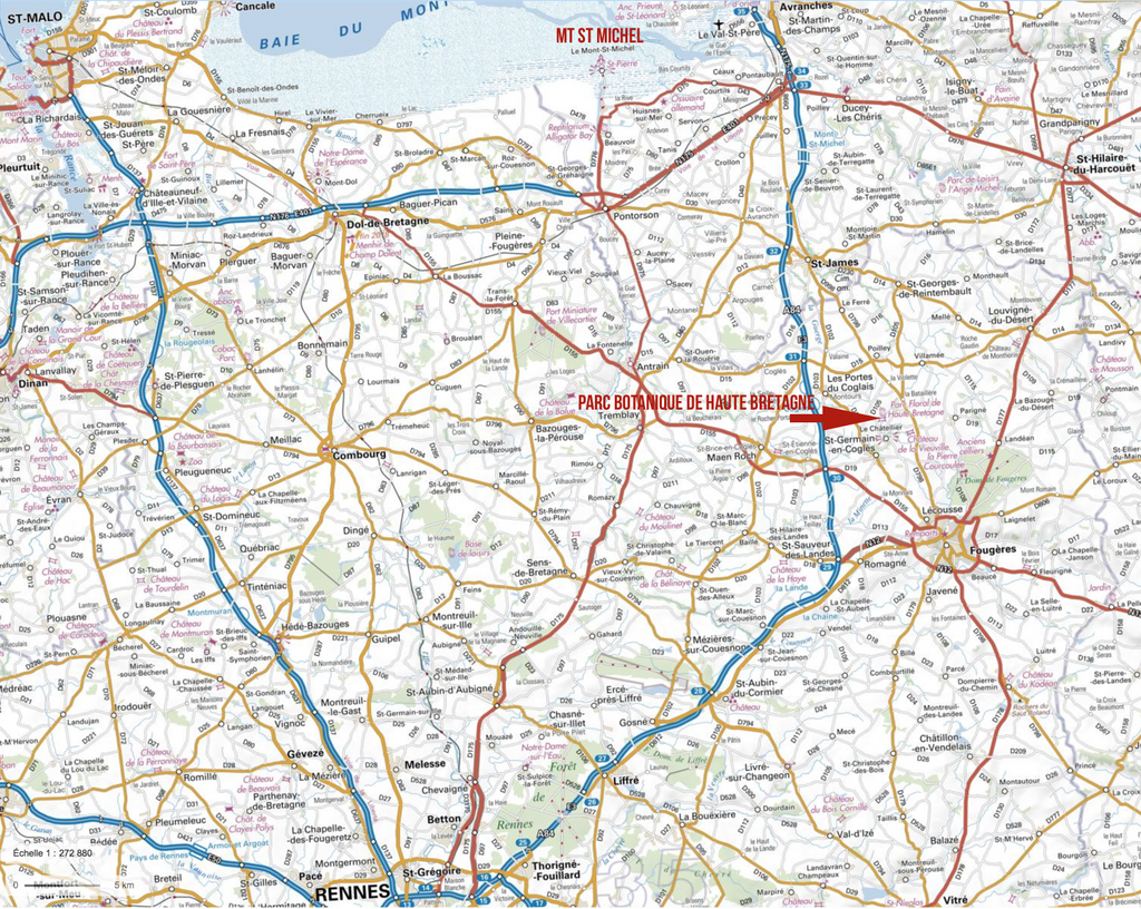 Les accès sont fléchés "Parc Floral" ou "Parc botanique de Haute Bretagne" à partir de la sortie n°30 de l'autoroute A83 .